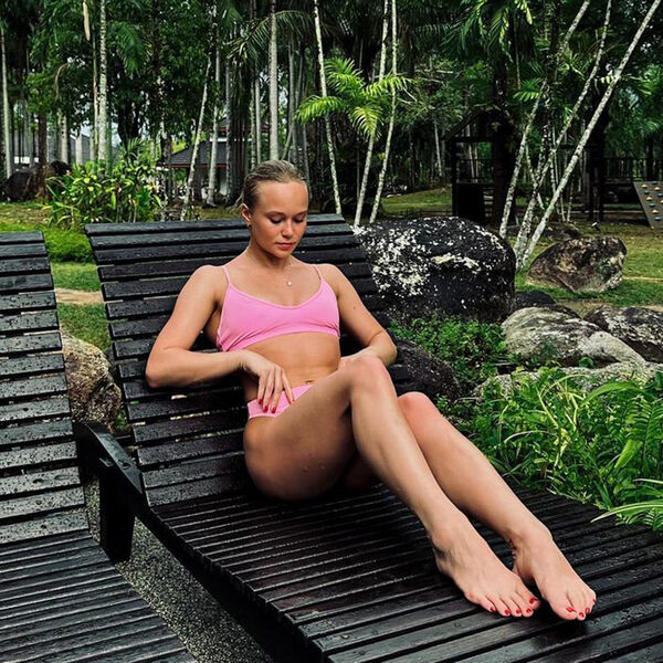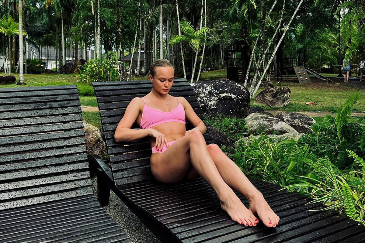 Спортсменка предстала перед подписчиками, лежа на шезлонге, принимая солнечные ванны.