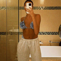 На снимке Леванова, находящаяся в ванной комнате, позирует в лифе с декором в виде цветов.