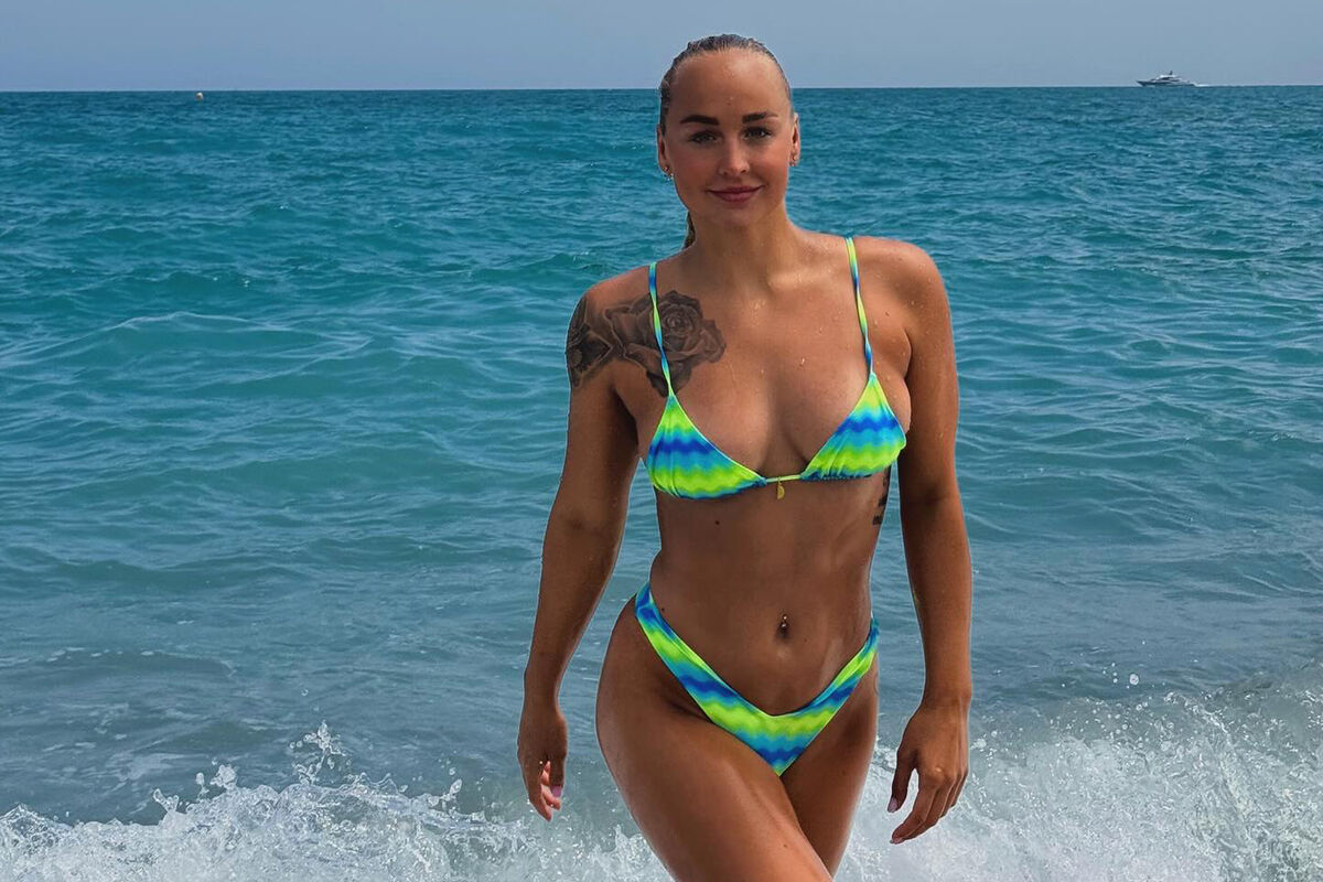 На снимке спортсменка позирует в купальнике.