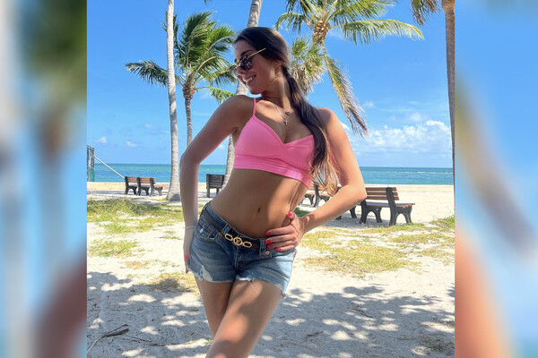 На одном из кадров спортсменка позирует в коротких джинсовых шортах и ярко-розовом топе с глубоким вырезом.