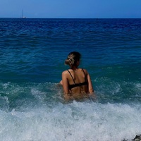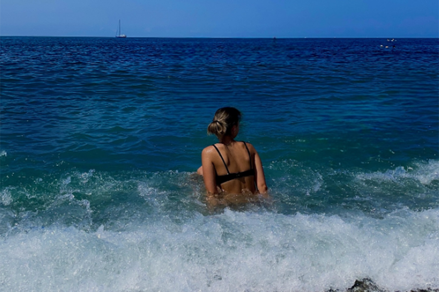 Спортсменка предстала перед подписчиками в воде, сидя спиной к объективу камеры в черном купальнике.