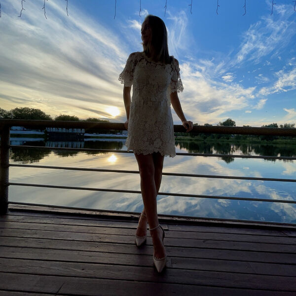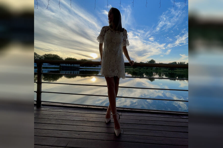 Спортсменка предстала перед подписчиками в коротком летнем платье, стоя на каблуках.