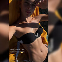 Солдатова, которая снимает себя сама, позирует в раздельном купальнике.