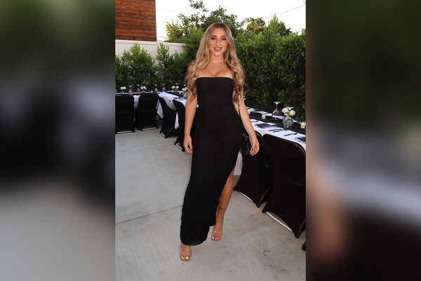 На снимке девушка позирует в черном платье.