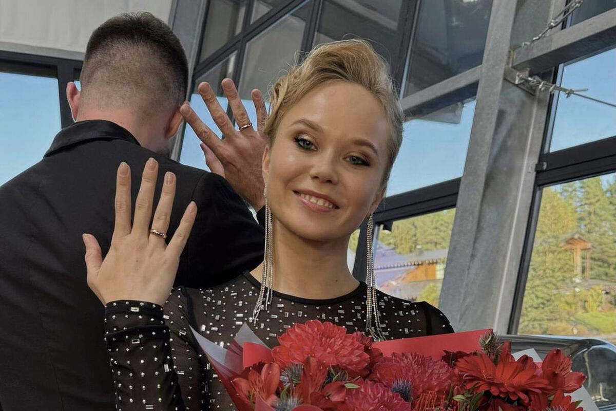 Избранник спортсменки не раскрывается — он стоит спиной к камере и также демонстрирует кольцо на пальце.
