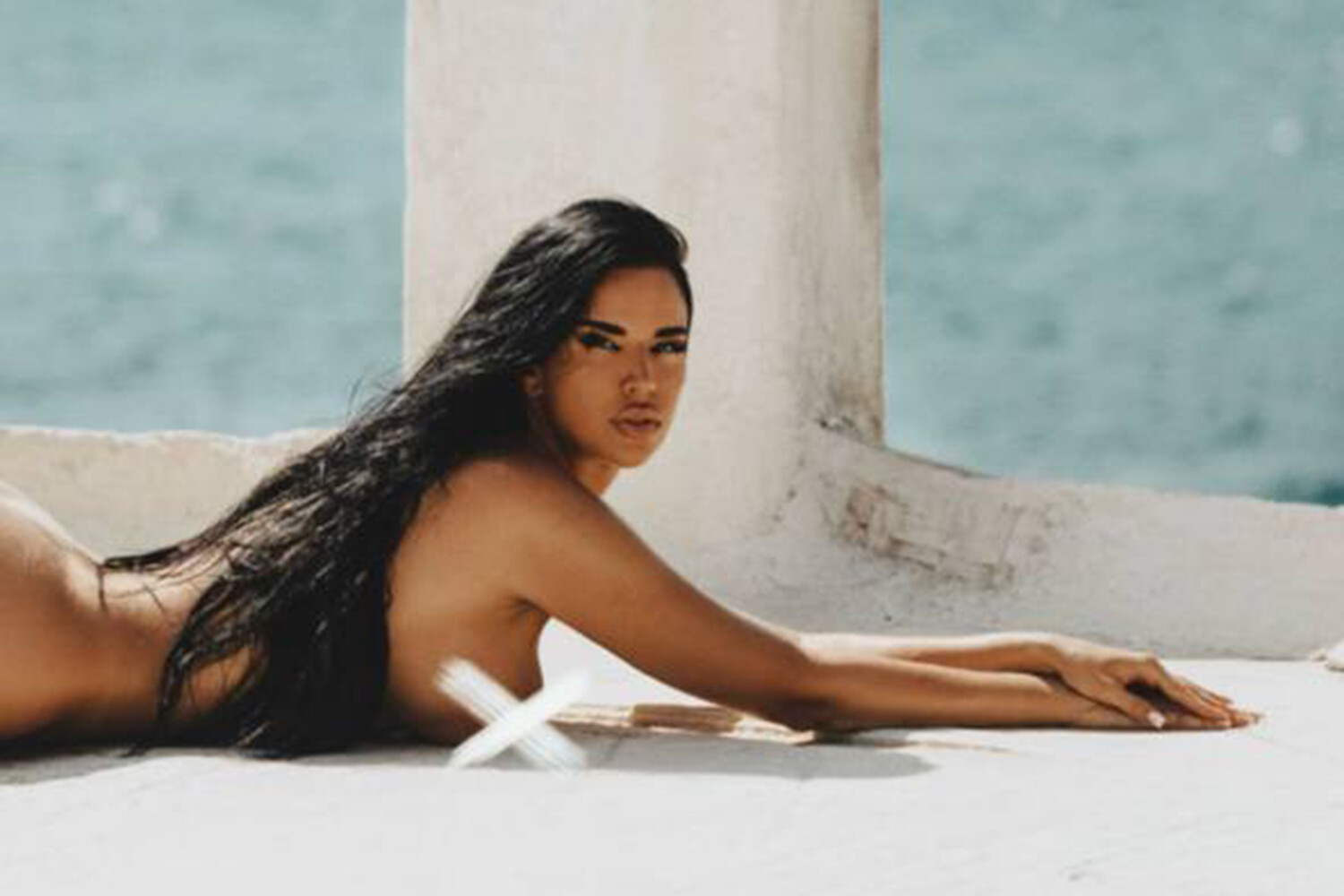 На кадре Кнолль позирует без белья.