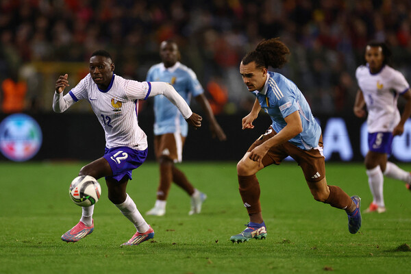 В первом тайме было назначено два пенальти. Однако бельгийцы свой не реализовали — на 23-й минуте полузащитник «Астон Виллы» Юри Тилеманс пробил выше ворот, а вот французы оказались точнее: нападающий «ПСЖ» Рандаль Коло-Муани забил с точки на 35-й минуте. Зато у Бельгии получилось забить в первой половине с игры: на 45+3-й минуте форвард «Лейпцига» Лои Опенда счет сравнял. Во втором тайме гол хавбека французов Ману Коне на 60-й минуте не засчитали из-за игры рукой, но уже через две минуты Коло-Муани оформил дубль. На 76-й минуте Франция осталась в меньшинстве: вторую желтую карточку получил полузащитник мадридского «Реала» Орельен Тчуамени.
