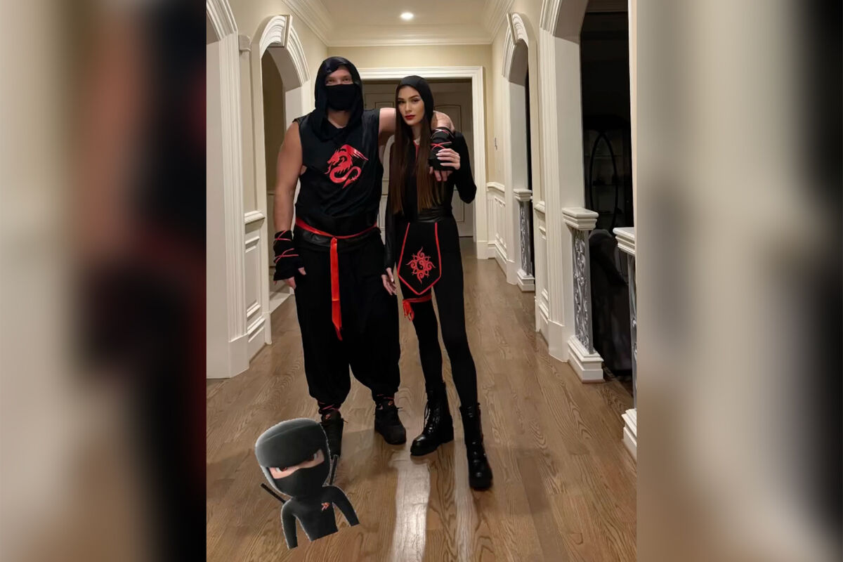 На снимке Овечкин с супругой одеты в костюмы ниндзя.