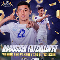 Полузащитник ЦСКА и сборной Узбекистана Аббосбек Файзуллаев был признан лучшим молодым игроком года в Азии. Об этом сообщается на сайте Азиатской конфедерации футбола (AFC).