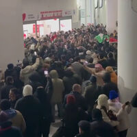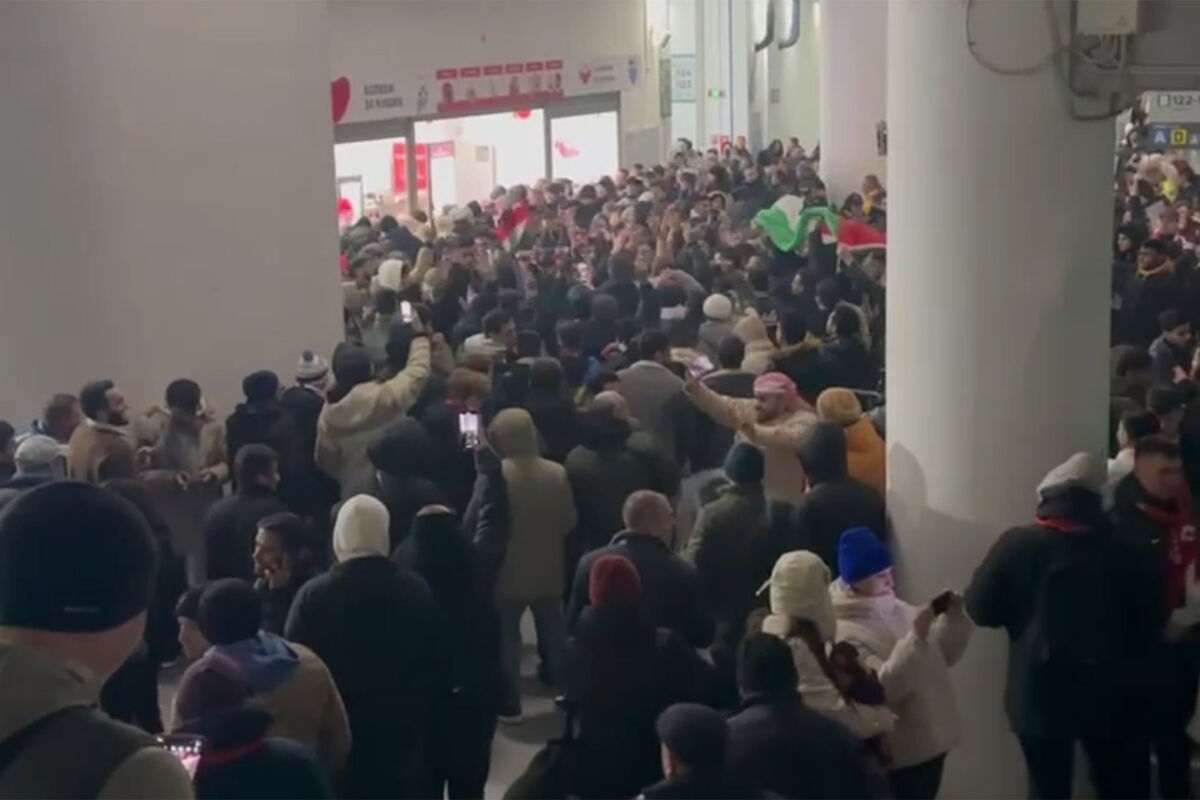 Сирийские фанаты в подтрибунном помещении скандировали нецензурную кричалку, которую можно перевести на русский язык примерно как «идите к черту», в адрес США и размахивали флагами своей страны и Палестины.