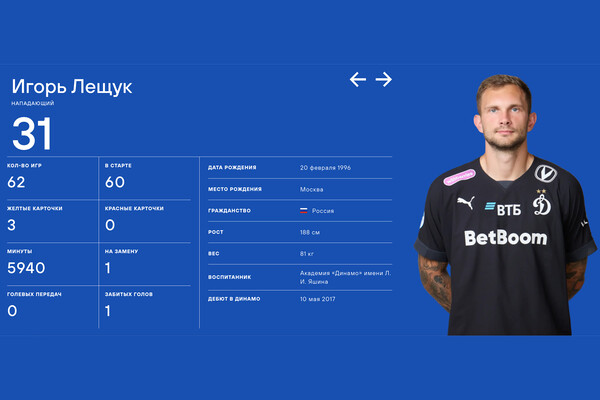 Московское «Динамо» переместило голкипера Игоря Лещука в список нападающих. Обновление было сделано на официальном сайте команды.
