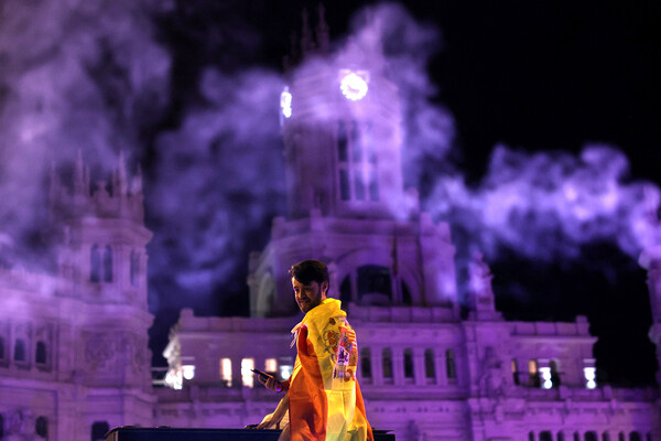 Во время празднования одного из голов несколько человек, поддерживающих испанский клуб, размахивали флагом.