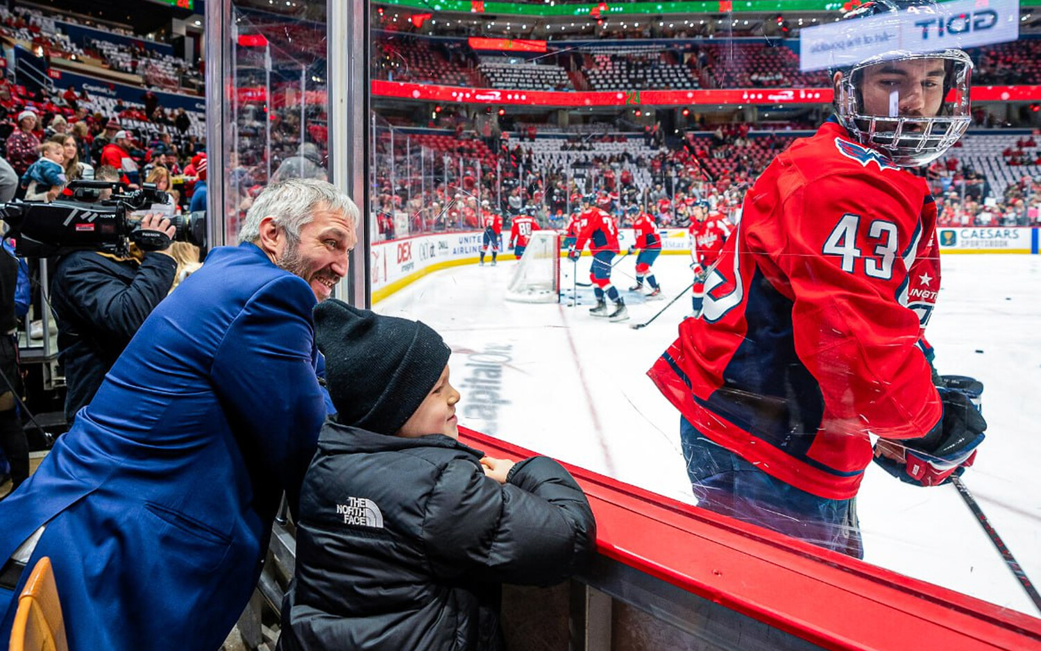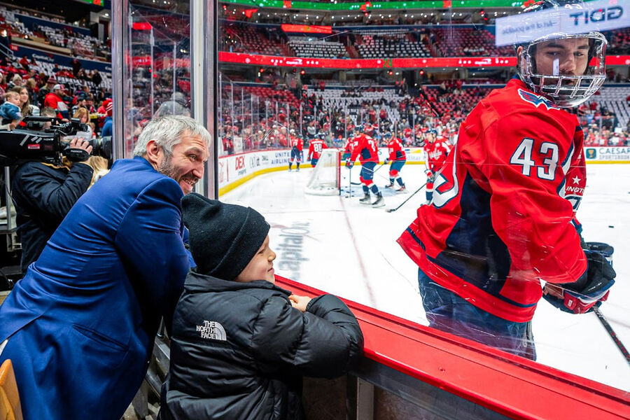 Российский нападающий и капитан «Вашингтон Кэпиталз» Александр Овечкин вместе с сыном Сергеем посетили матч «столичных», который прошел в рамках регулярного чемпионата Национальной хоккейной лиги (НХЛ) против «Лос-Анджелес Кингз».
