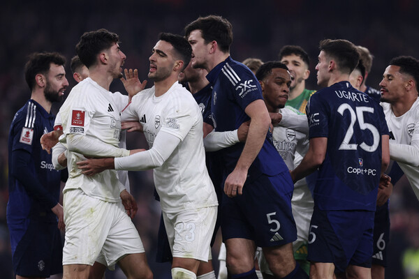 Защитник «Манчестер Юнайтед» Харри Магуайр вступил в перепалку с форвардом «Арсенала» Кайем Хаверцем по ходу матча третьего раунда Кубка Англии (1:1, 5:3 пен).