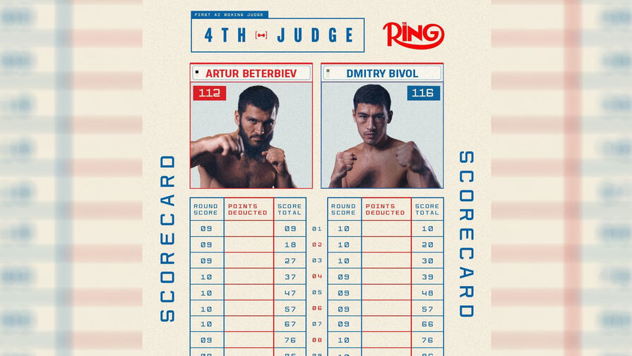 По мнению ИИ, Бивол выиграл поединок со счетом 116-112.