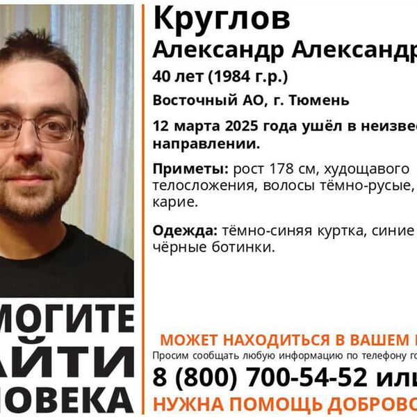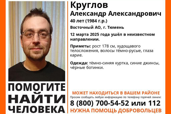 «Пропал Круглов Александр Александрович, 40 лет. Последний раз видели в Восточном районе города», — говорится в сообщении.