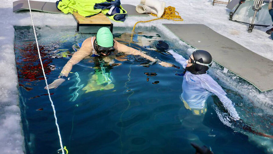 Россиянка Некрасова установила рекорд, проплыв 122 метра подо льдом Байкала