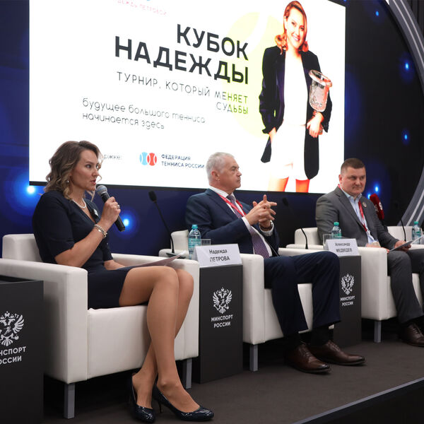 Бронзовая медалистка летних Олимпийских игр--2012 по теннису Надежда Петрова выступила модератором сессии «150 лет российскому теннису: смена поколений и взгляд в будущее», состоявшейся на ПМЭФ на стенде министерства спорта Российской Федерации.