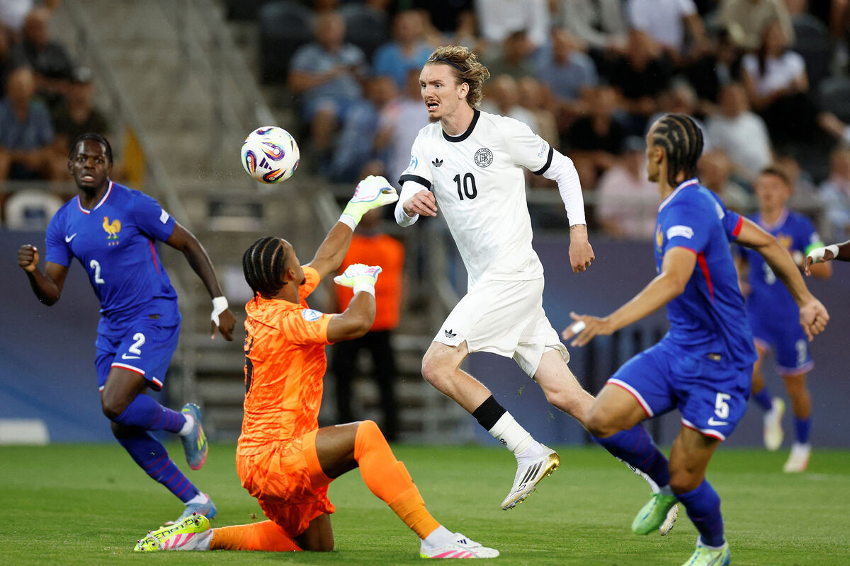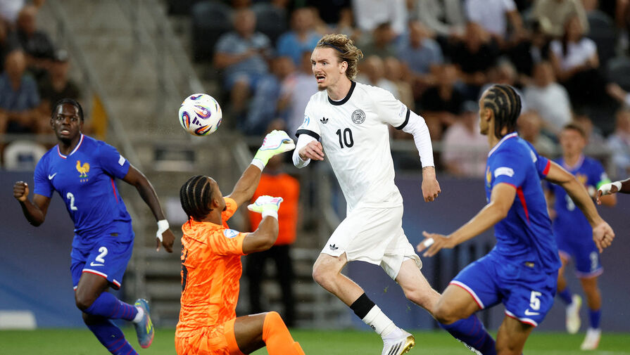 Сборная Германии по футболу вышла в финал молодежного чемпионата Европы, разгромив команду Франции.