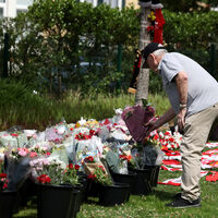Болельщики несут к стадиону цветы и свечи.