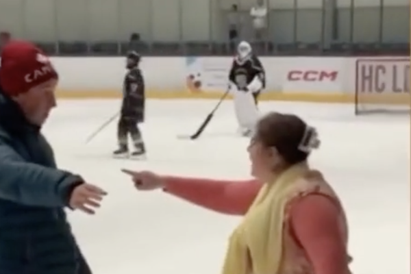 Мама одного из хоккеистов выбежала на лед во время хоккейного матча, чтобы напасть на судей, передает Idnes.