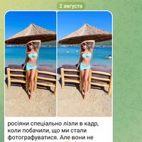 «Россияне специально лезли в кадр, когда увидели, что мы начали фотографироваться. Но они не учли одного. Жаль, что их так же легко нельзя стереть с планеты навсегда», — написала она.