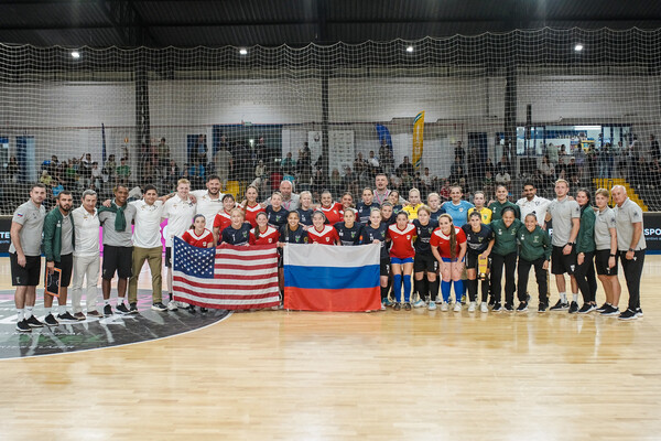 Футболистки футзального клуба «Норманочка» из Нижнего Новгорода сделали совместное фото вместе с командой «Эквадор» из Нью-Йорка после встречи в рамках турнира Copa Mundo do Futsal, который проходит в Бразилии.