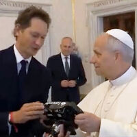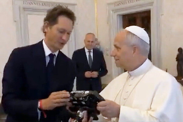 Во время встречи Элканн подарил понтифику руль от болида пилота «Скудерии» монегаска Шарля Леклера, отметив, что тот действительно использовался гонщиком во время Гран-при «Формулы-1».
