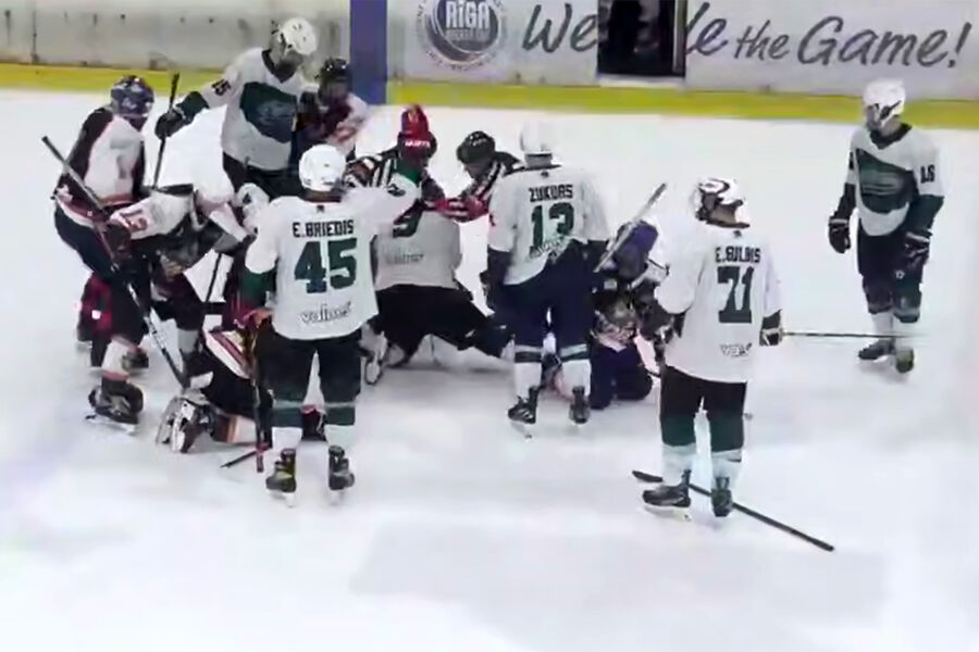 Хоккеисты и тренеры латвийских любительских хоккейных клубов Priedaine и Ķekava Clappers устроили массовую драку из-за того, что представителям Ķekava Clappers не понравилось, что их соперники используют русский язык, передает Sport Baza.