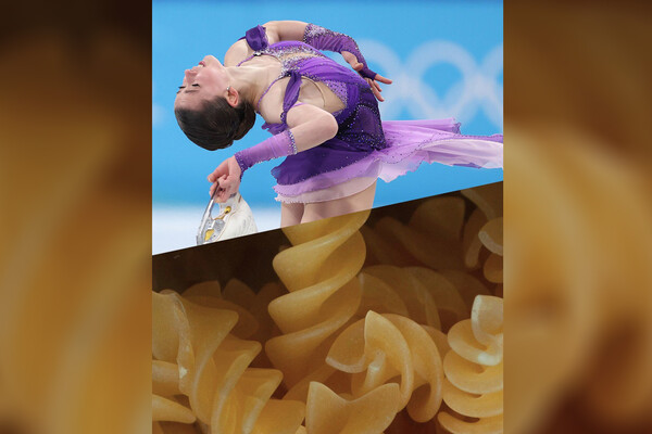 Снимок был выложен 25 октября. Российская спортсменка попала в подборку кадров, опубликованных в рамках празднования Всемирного дня пасты 25 октября, где макаронные изделия ассоциировались с различными олимпийскими дисциплинами. Валиеву в нем сравнили с фузилли (классические итальянские макаронные изделия в виде спирали из твердых сортов пшеницы).