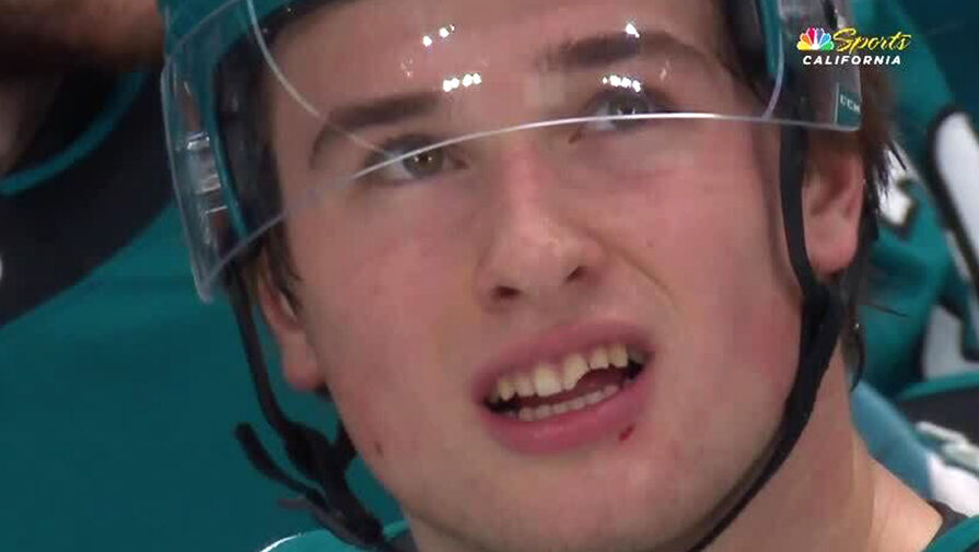Российский нападающий «Виннипег Джетс» Никита Чибриков ударил клюшкой по лицу игрока «Сан-Хосе Шаркс» Маклина Селебрини во время матча регулярного чемпионата Национальной хоккейной лиги (НХЛ).