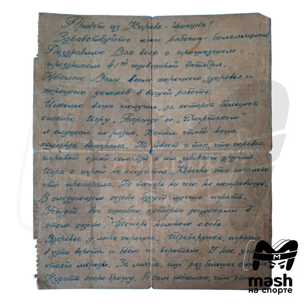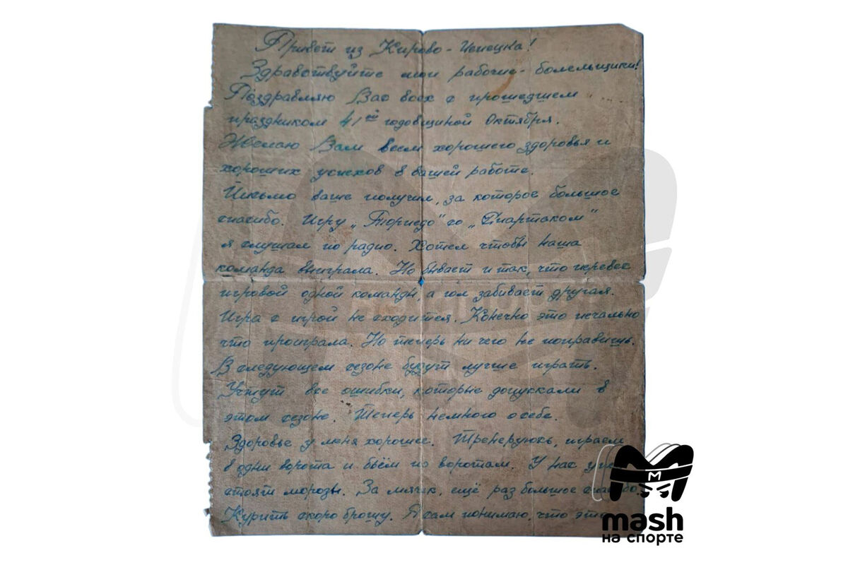 В письме прославленный футболист рассказал об условиях пребывания в заключении, быте и распорядке дня, вредных привычках и о том, что следил за ходом матча первенства страны между «Торпедо» и «Спартаком» по радиотрансляции.