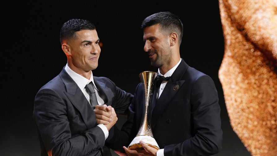 Нападающий саудовского «Аль-Насра» и сборной Португалии Криштиану Роналду вручил награду Globe Soccer Awards теннисисту Новаку Джоковичу как лучшему спортсмену года.