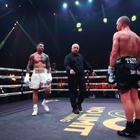 «Не знаю, почему все меня освистывают. Это не я остановил поединок. Моей вины нет. <...> Вы должны поддерживать спортсменов. Это же спорт. Я извиняюсь. Прошу прощения. Мы повторим это снова, обещаю вам. Я не просил останавливать бой», — заявил он на ринге.