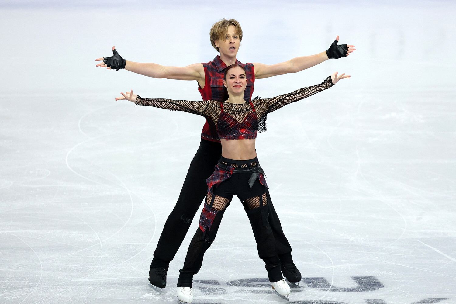Спортсмены набрали 78,97 балла. Первое место в этом виде программы заняли действующие олимпийские чемпионы в командном турнире американцы Мэдисон Чок и Эван Бейтс с результатом 91,06 балла. Вторыми стали французы Лоранс Фурнье-Бодри и Гийом Сизерон (89,98 балла), третьими — представители Великобритании Лайла Фир и Льюис Гибсон (86,85 балла).