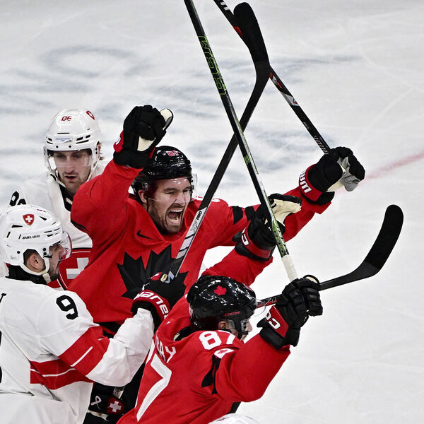 В 1/4 финала хоккейного турнира среди мужчин на Олимпийских играх в Италии вошли Канада, США, Словакия, Финляндия, Чехия, Швеция, Германия и Швейцария. Пары определились по итогам матчей 1/8 финала.
