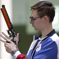 Он победил в стрельбе из пневматического пистолета с 10 м, набрав 242,2 балла.