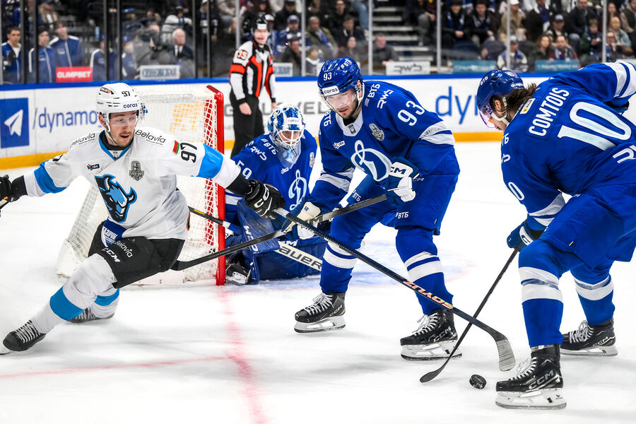Минское «Динамо» обыграло московское «Динамо» в четвертом матче 1/8 финала Континентальной хоккейной лиги (КХЛ).