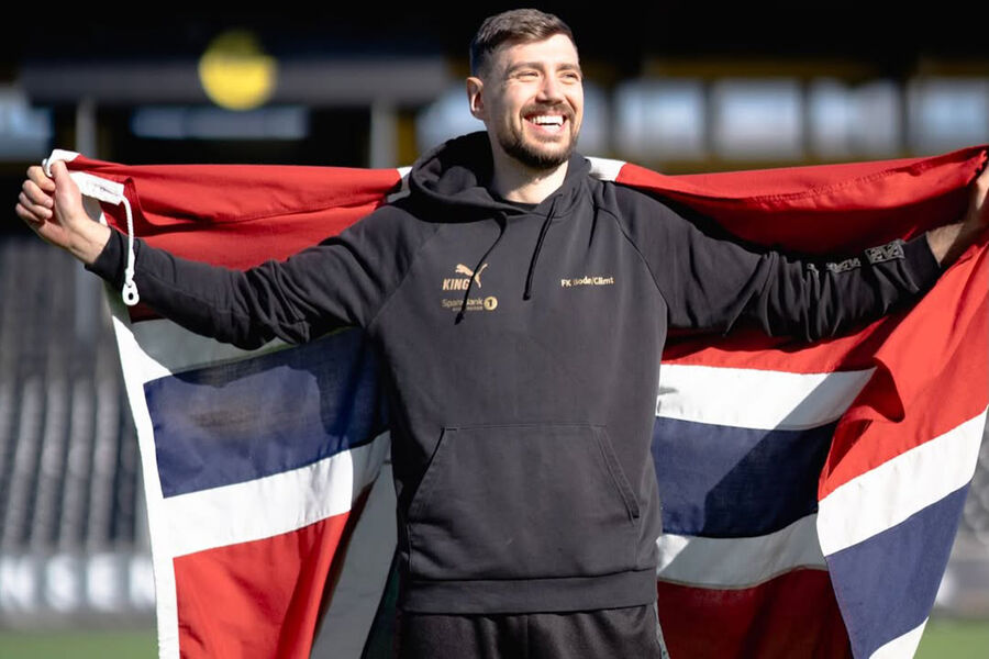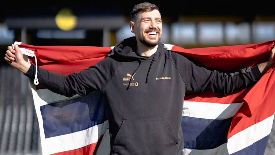 Голкипер норвежского «Буде-Глимт» Никита Хайкин в своих соцсетях с флагом Норвегии.