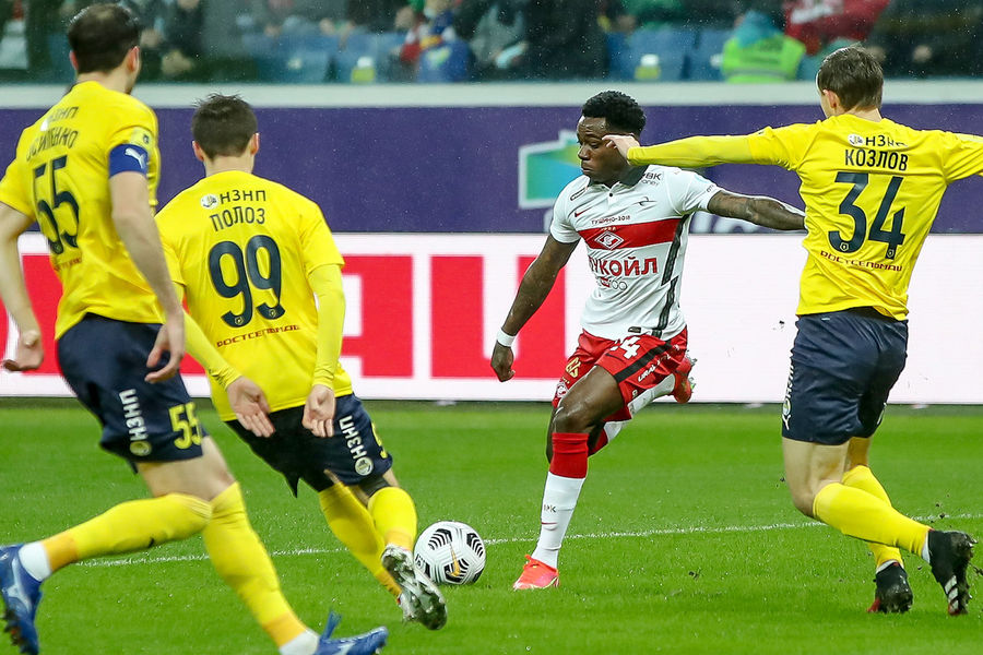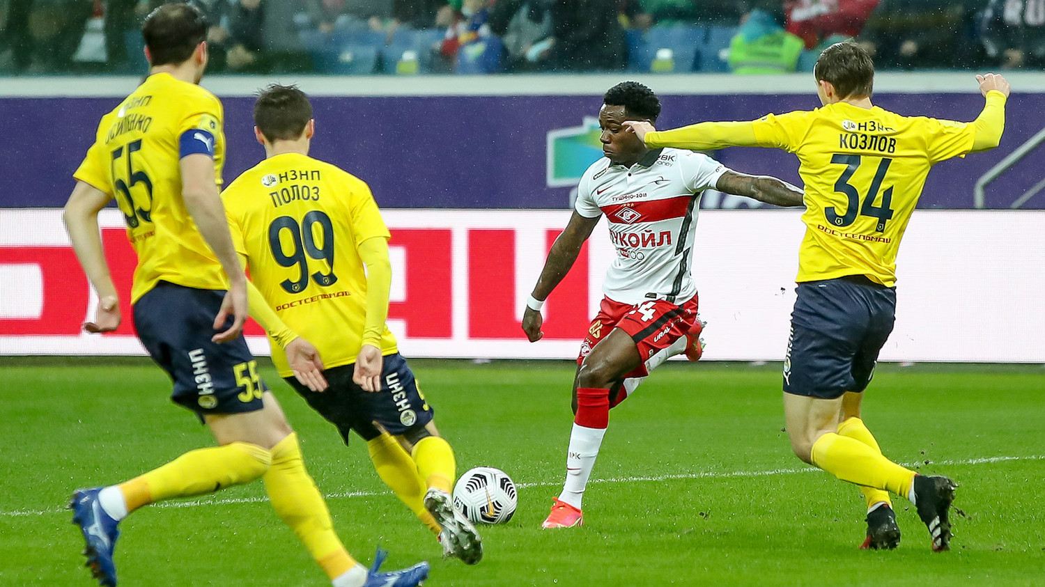 Поярков пошел в дриблинг в спартаковской штрафной и даже накрутил Мозеса, но дальше на пути встали другие красно-белые. Пошла контратака, в которой Алеесами едва не срезал в свои ворота прострел Зобнина. Угловой.