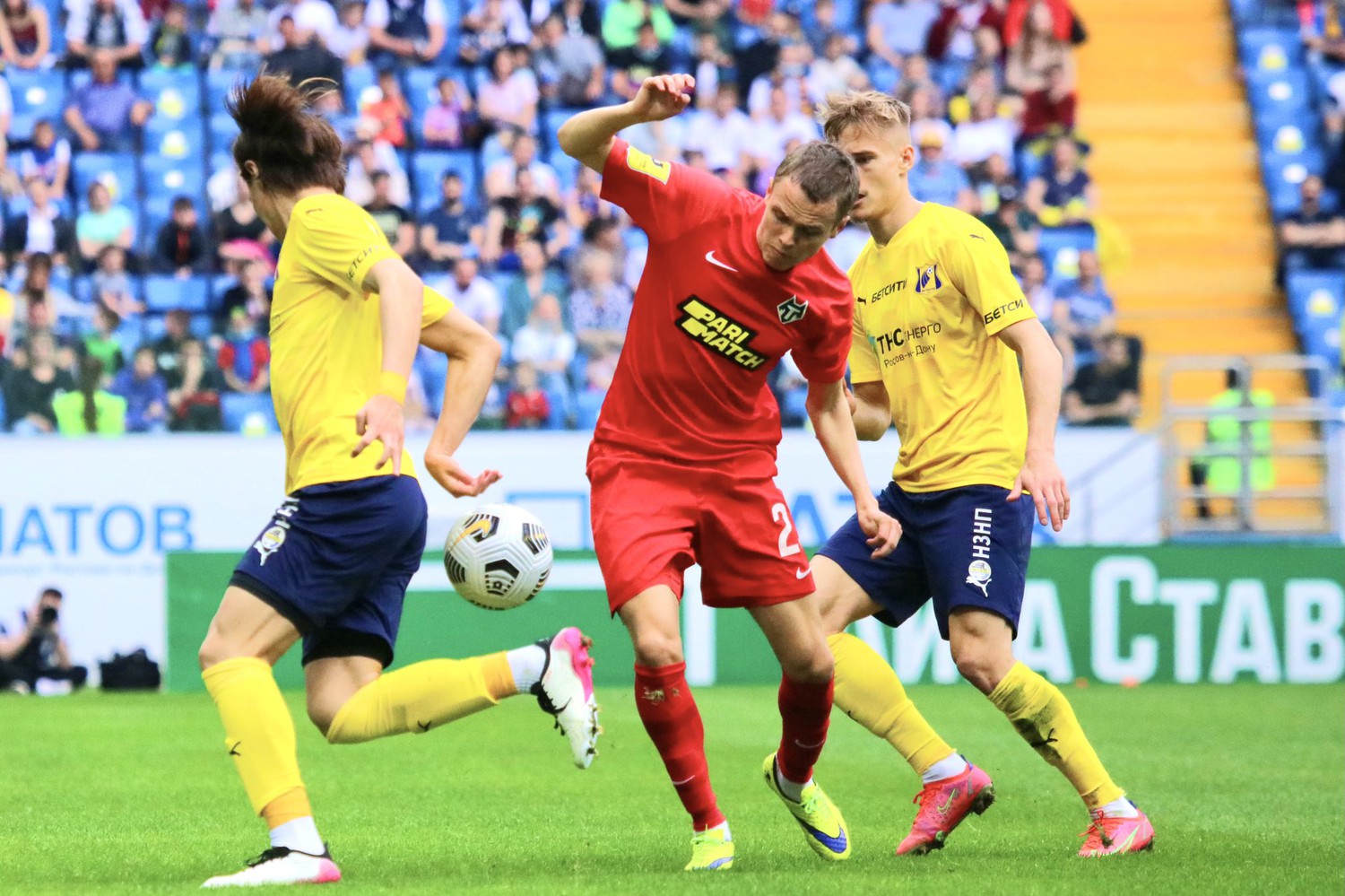 Терентьев подключился в атаку «Ростова» по правому краю, прострелил к радиусу штрафной, откуда Хасимото нанёс неудачный удар — в сторону от ворот.