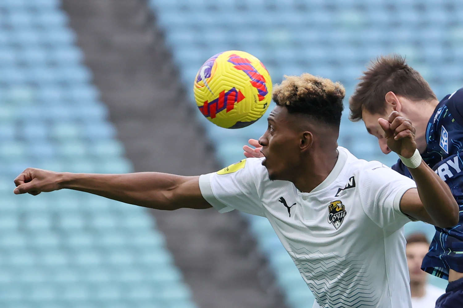Сарвели идет прямо по центру, таща мяч, но сбивают ему темп, останавливая перспективную атаку самарцев.