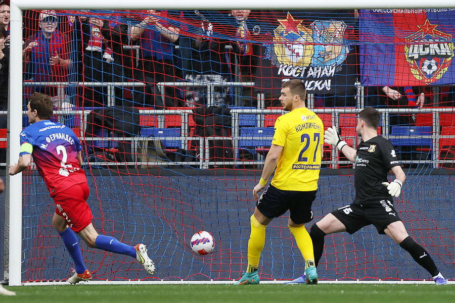 Угловой разыгрывает «Ростов», но справляется ЦСКА в своей штрафной. Атака продолжилась, но Фернандес в воздухе переиграл Комличенко.