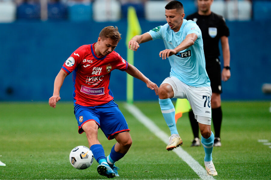 Тут же ответочка от ЦСКА: прекрасная передача от Чалова прошла, но вот замыкающий удар не удался — немного мимо ворот.