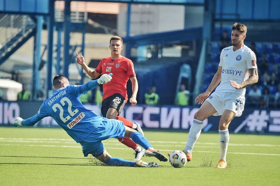 Марин простреливал — рикошетом от ноги защитника мяч полетел на угловой, но Лантратов успел его перехватить и зафиксировать.