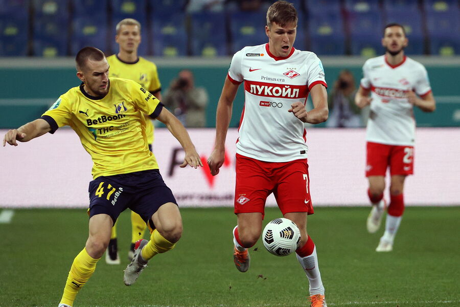 Состав «Спартака»: Селихов, Чернов, Джикия, Рыбус, Зобнин, Игнатов, Хлусевич, Умяров, Денисов, Промес, Соболев.