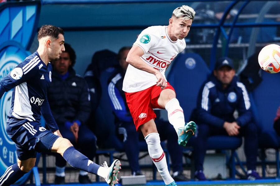 Второй удар в створ у «Спартака» — это Бальде пробил от левого края штрафной, но точно в руки Сысуеву.
