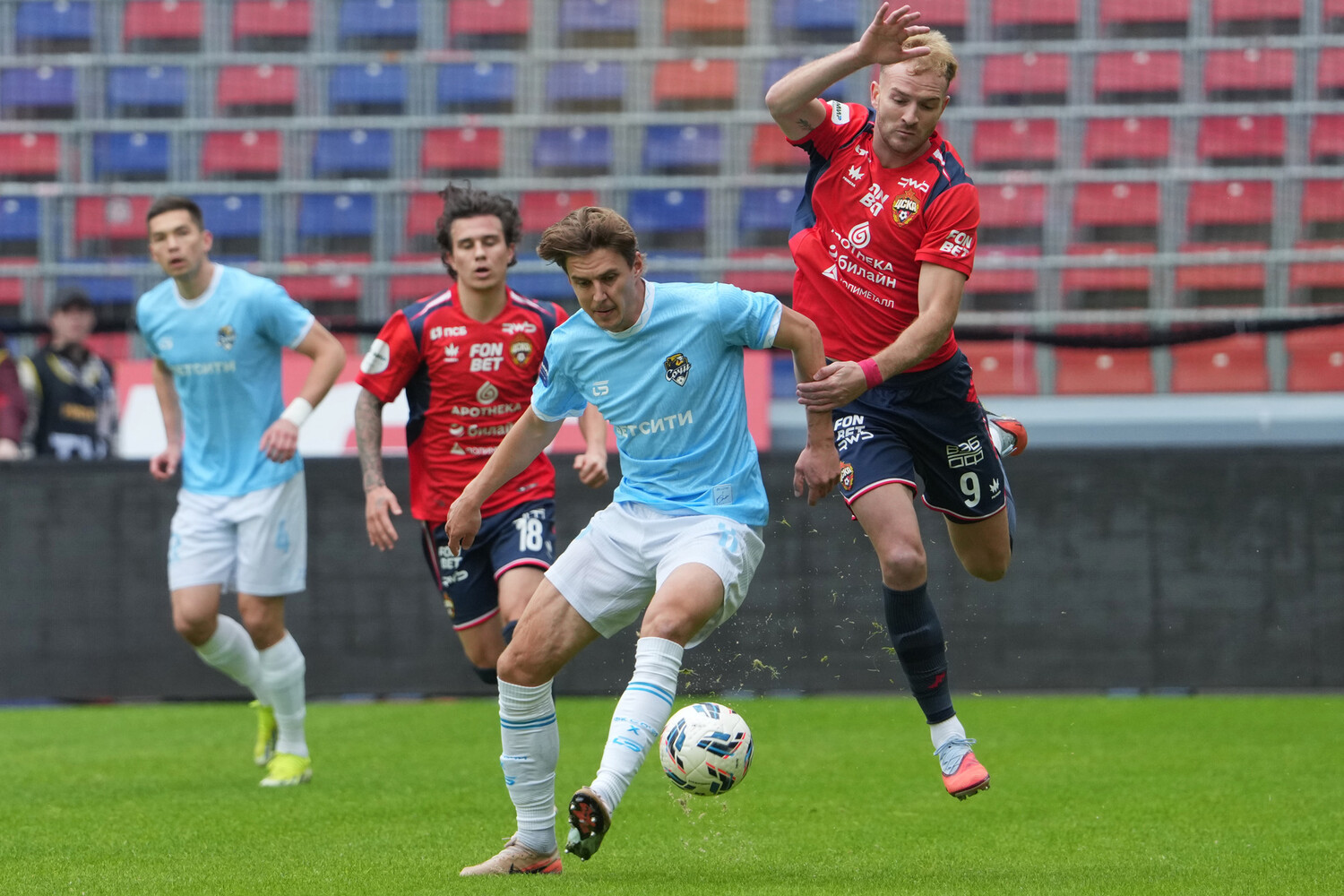 Гости потеряли мяч на чужой половине поля, и это могла быть перспективная контратака в исполнении красно-синих. Но Козлов не смог вертикальной передачей вывести партнера к штрафной, защитник «Сочи» перехватил мяч.