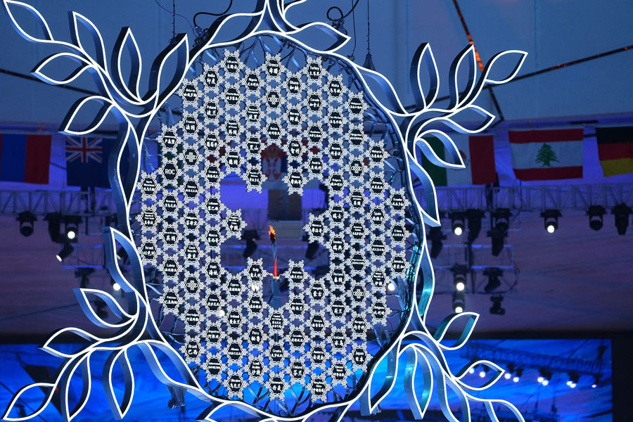 В финале был зажжен олимпийский факел, который водрузили в центр большой снежинки, сложенной из названий всех стран-участниц Олимпиады.