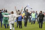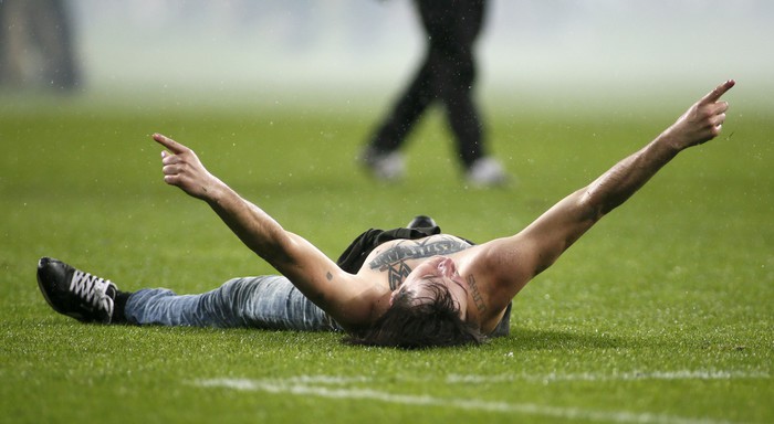 Болельщики попытались разобрать на сувениры футбольные ворота, а также с помощью стульев атаковали фанатский сектор «Наполи».